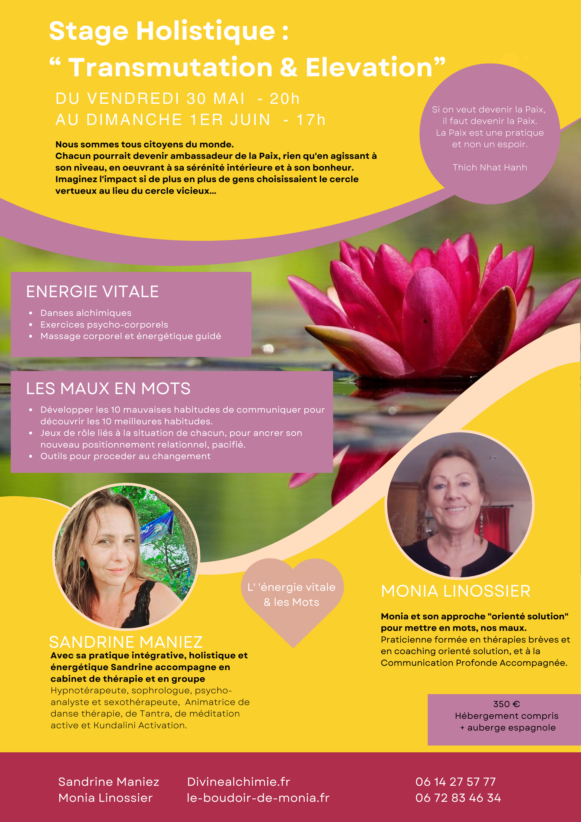 Sandrine Maniez et Monia Linossier s'engagent à vous guider tout au long de ce week-end
